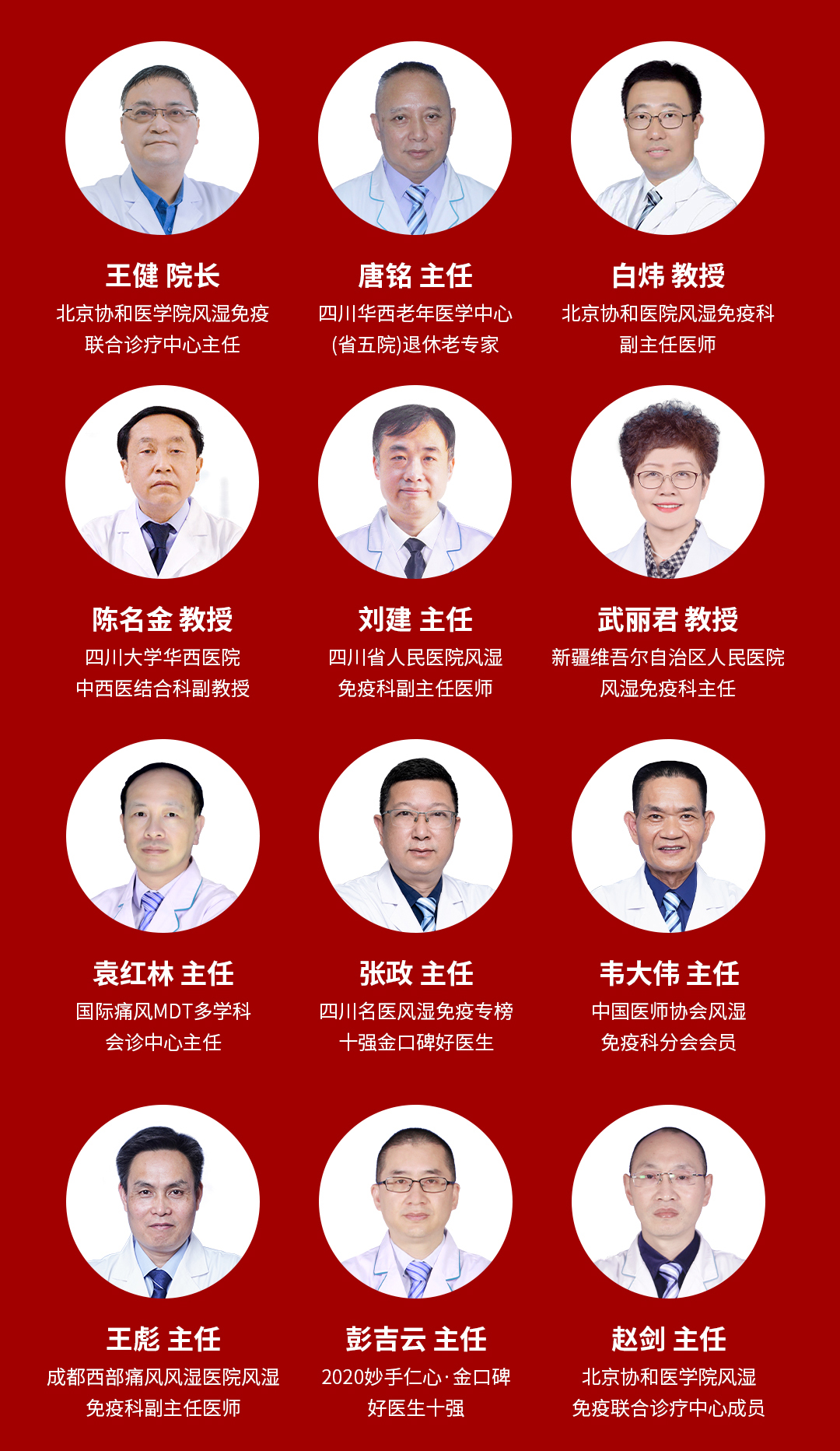 中国人民解放军总医院(北京301医院)姜德训教授、北京协和医院白炜教授、新疆维吾尔自治区人民医院武丽君教授、北京协和医学院风湿免疫联合诊疗中心王健院长及四川华西老年医学中心(省五院)退休老专家唐铭主任医师等国内风湿免疫科领域知名专家,针对痛风、风湿骨病疑难病例进行经验分享和深度探讨,交流最新临床研究成果,分享学术前沿动态。