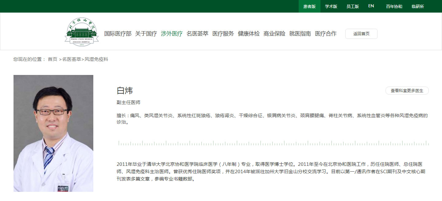 北京协和医院风湿免疫科大咖白炜教授